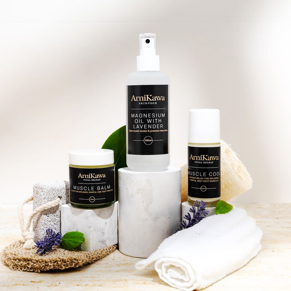A premium natural anti-inflammatory set made with Arnica, Kawakawa, botanicals and pure essential oils designed to respond quickly to muscle tension and pain.